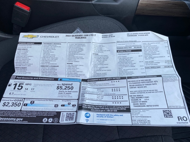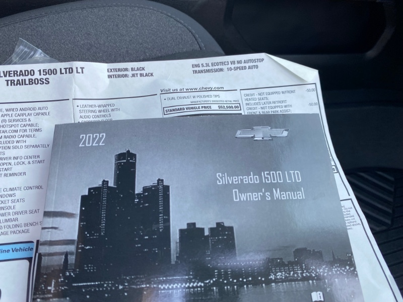 2022 Chevy Silverado 1500 Trail Boss Four-Wheel-Drive 5.3L Vortec Crew Cab Power Windows, Locks, and Seat. Heated Seats and Steering Wheel. Alloy Wheels
